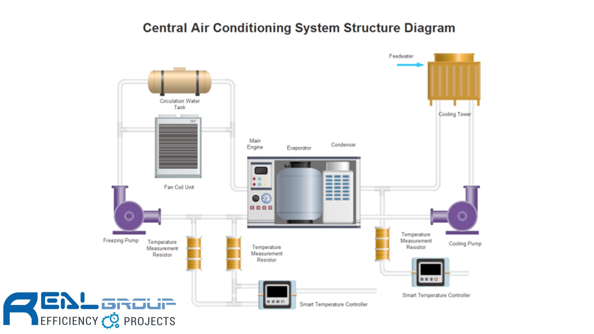 Ví dụ về sơ đồ P&ID ở đây cho thấy quá trình loại bỏ nhiệt và độ ẩm ra khỏi một không gian nhất định nhằm cải thiện điều kiện môi trường. Điều hòa trung tâm được đặt ở giữa và được trang bị bởi một loạt các đường ống theo các hướng khác nhau.